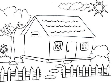 Gambar Sketsa Hitam Putih Mewarnai Pemandangan Rumah Cloudy Girl