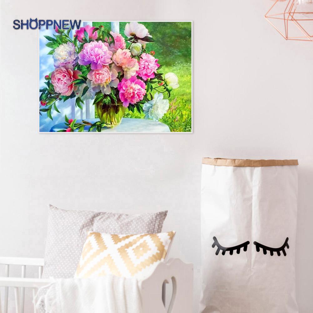 Buket Bunga Musim Semi Di Jendela Cat Dengan Angka Diy Kanvas