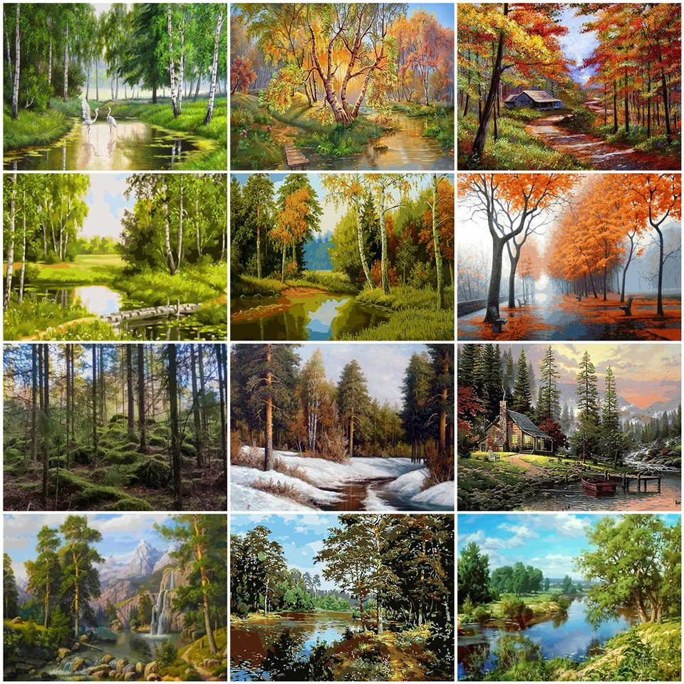 Diy Mewarnai Gambar Minyak Lukisan Dengan Angka Hutan Trail