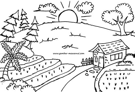Mewarnai Gambar Pemandangan Alam Pedesaan Belajarmewarnai Info