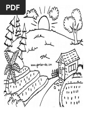 Gambar Pemandangan Hitam Putih Untuk Diwarnai Anak Anak Serba