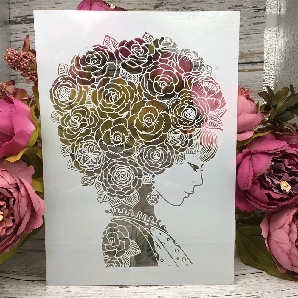 A4 29 Cm Bunga Indah Rambut Gadis Diy Layering Stensil Lukisan